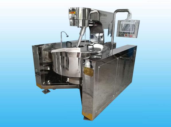 全自動(dòng)電磁加熱行星攪拌炒鍋,此設(shè)備與常規(guī)電磁加熱炒鍋不同的是添加了自動(dòng)注水裝置,在制作物料和清洗設(shè)備時(shí)比較方便;為了更準(zhǔn)確的計(jì)算出一天所加工的產(chǎn)量,在設(shè)備上又添加了電子稱重模塊,計(jì)算出一鍋所加工的物料數(shù)量。